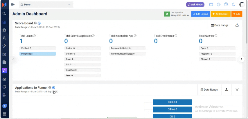 Overview Lead Score can be configured to evaluate a lead’s conversion potential based on lead stages, lead activities, and automated scoring rules. Lead Stage Score: Assigns a predefined score when a lead reaches a specific stage, based on counselor ...