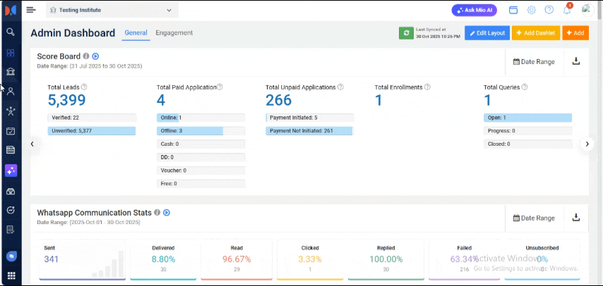 - Go to Settings > Institute Configuration > Lead Fields from the navigation menu.