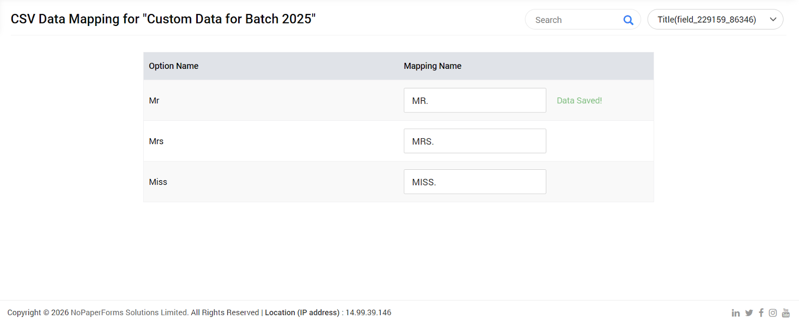 - Users must have permission to access Manage CSV Mapping under Formdesk.