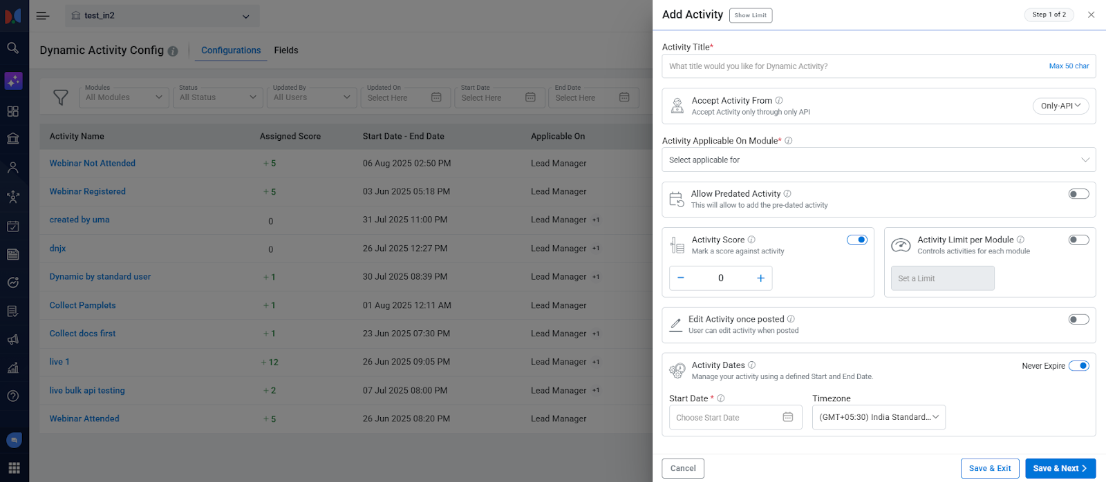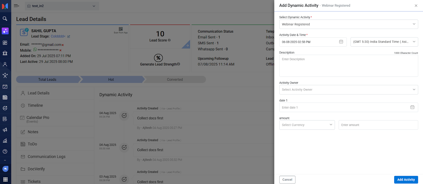 - Create Custom Activities: Go beyond standard CRM activities. Define and track unique interactions relevant to your specific business processes (e.g., "Campus Visit," "Visa Document Submitted," "Webinar Attended," "Course Material Explored, “Clicked Add to Cart”).