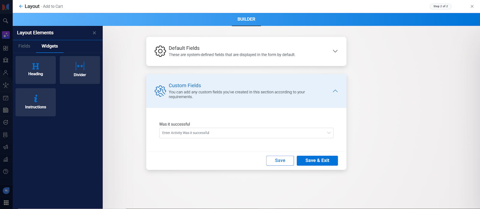 After clicking Next, you'll be taken to the Layout Builder.