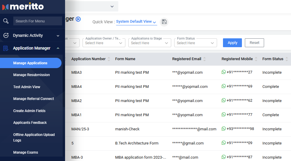 Q: How can I find students who have re-enquired? A: Follow the below steps: Navigate to Lead Manager > Manage Leads. Open Advanced Filters. Apply the filter: Registration Attempts > Greater than > 1. This will display all students who have made more ...