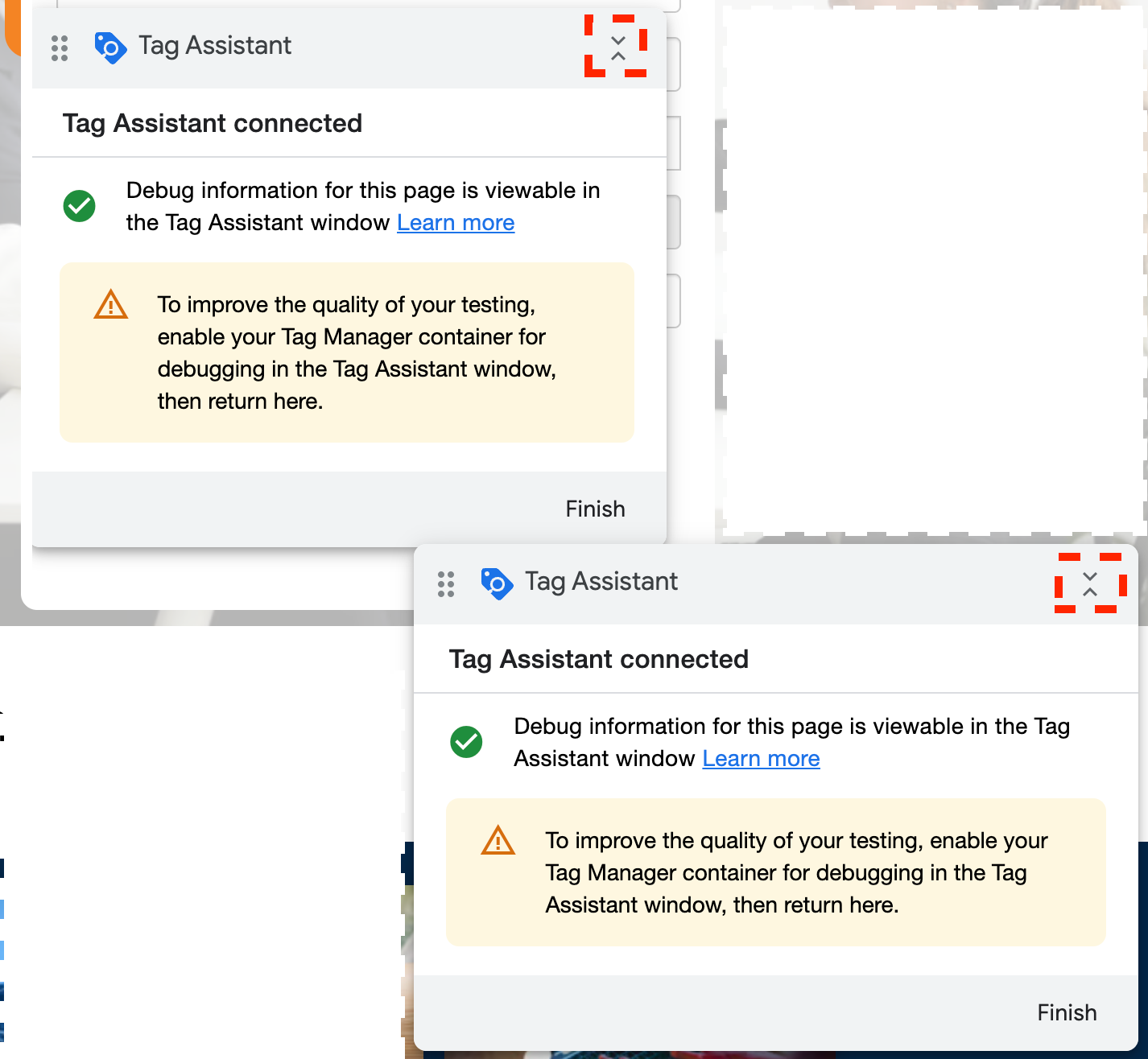 - Please do not close any of these "Tag Assistant Pop-ups". You may choose to minimise (as highlighted in the image below):