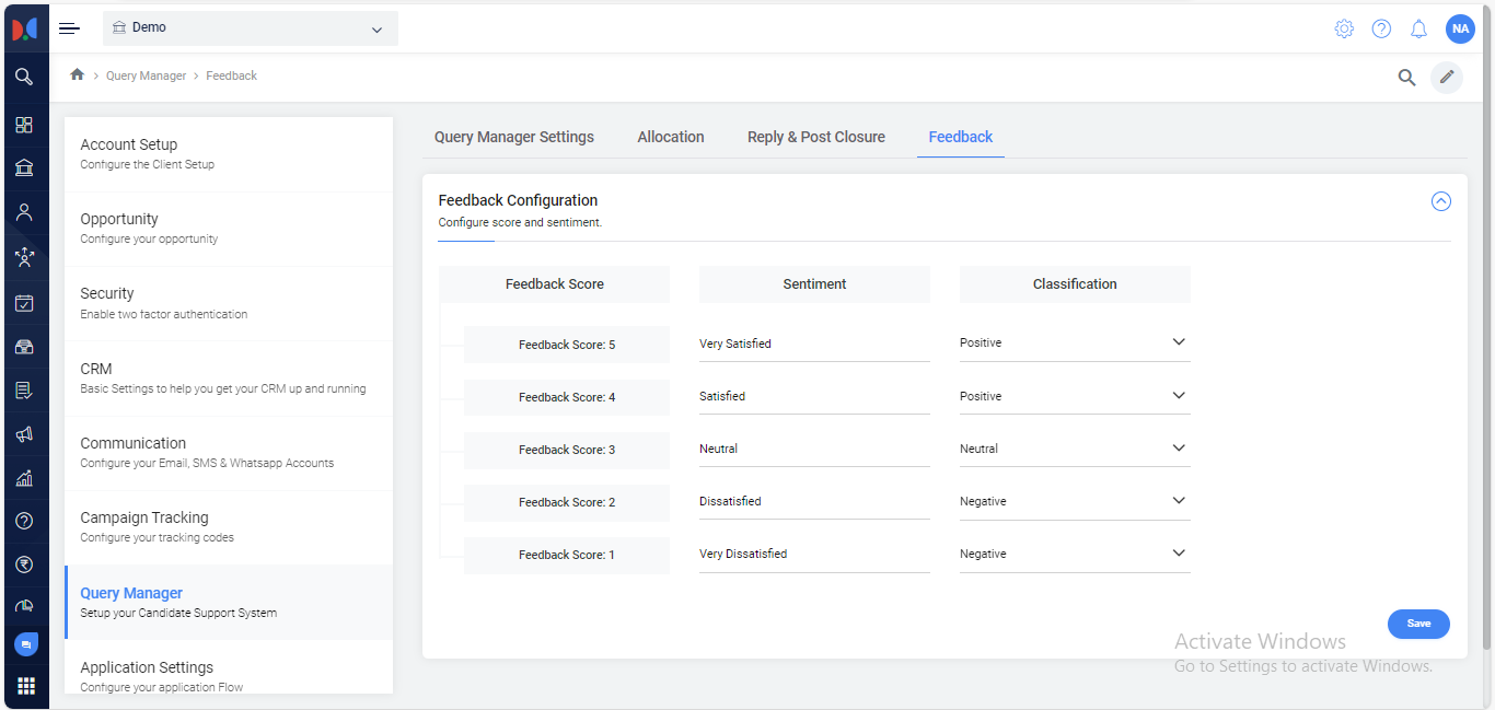 Configuring feedback scores and sentiments in Meritto ensures a systematic approach to analyzing applicant feedback. By categorizing responses and understanding sentiments, institutions can identify areas for improvement, enhance user experiences, and drive better engagement outcomes. Regularly revisiting these configurations will ensure they remain relevant and effective in providing actionable insights for continuous enhancement.