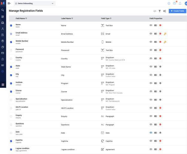 Meritto CRM provides a powerful and customizable way to manage registration fields, allowing users to tailor forms and data capture based on specific requirements. This article walks you through how to view, configure, and manage registration fields within the CRM platform.
