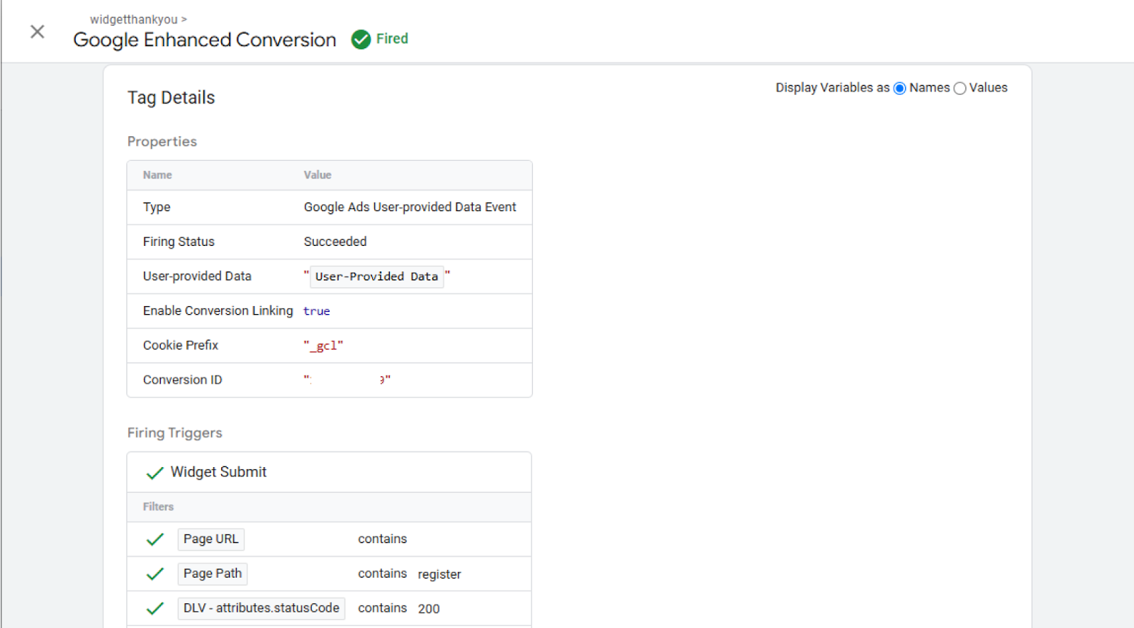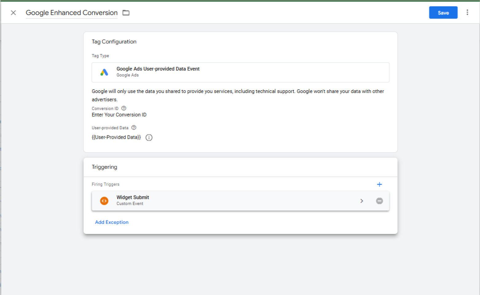 How to set up Google Ads Enhanced Conversions with Google Tag Manager for widgets?