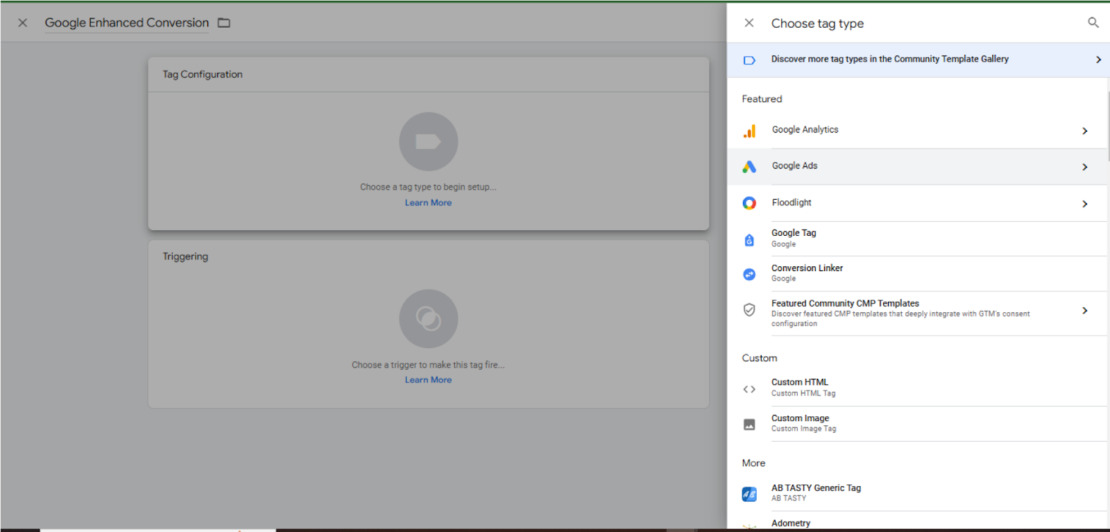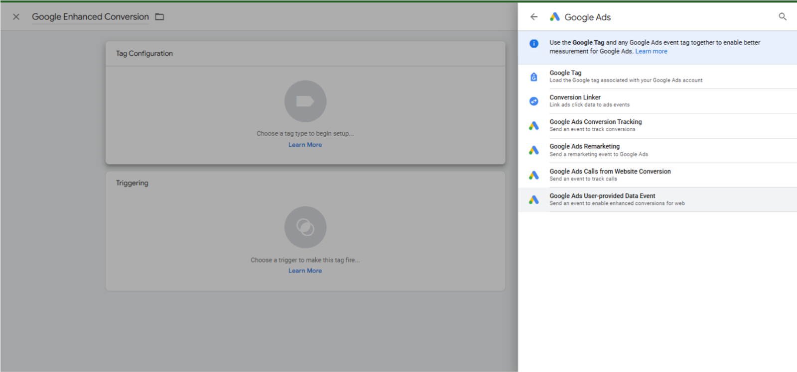 - Choose your Tag Type As “Google Ads” > “Google Ads User-provided Data Event”