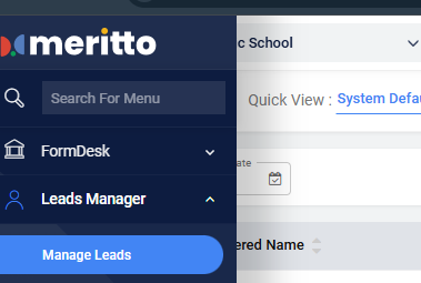 - Alternatively, you can use the search bar in the menu to find and click on Manage Leads.