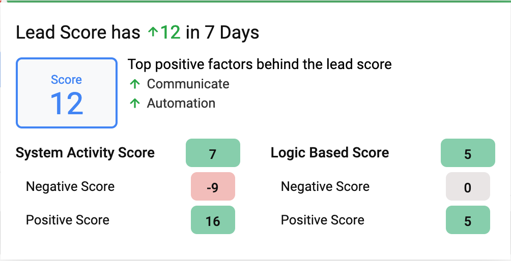Identify and re-engage low-scoring leads - Beyond prioritizing high-quality and high-intent leads, it gives you a clear picture of leads with low lead scores who might need some more nurturing, allowing you to re-engage these leads before it’s too late.