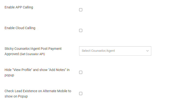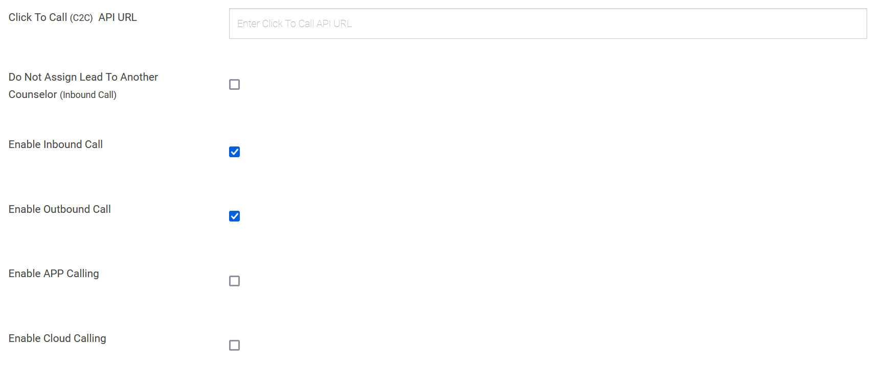 Note: In case both "Enable App Calling" and "Enable Cloud Calling" are check marked yes, then both options of "MCube based calling" and "Mobile App based calling" will be available to the counsellors via Meritto Mobile API.