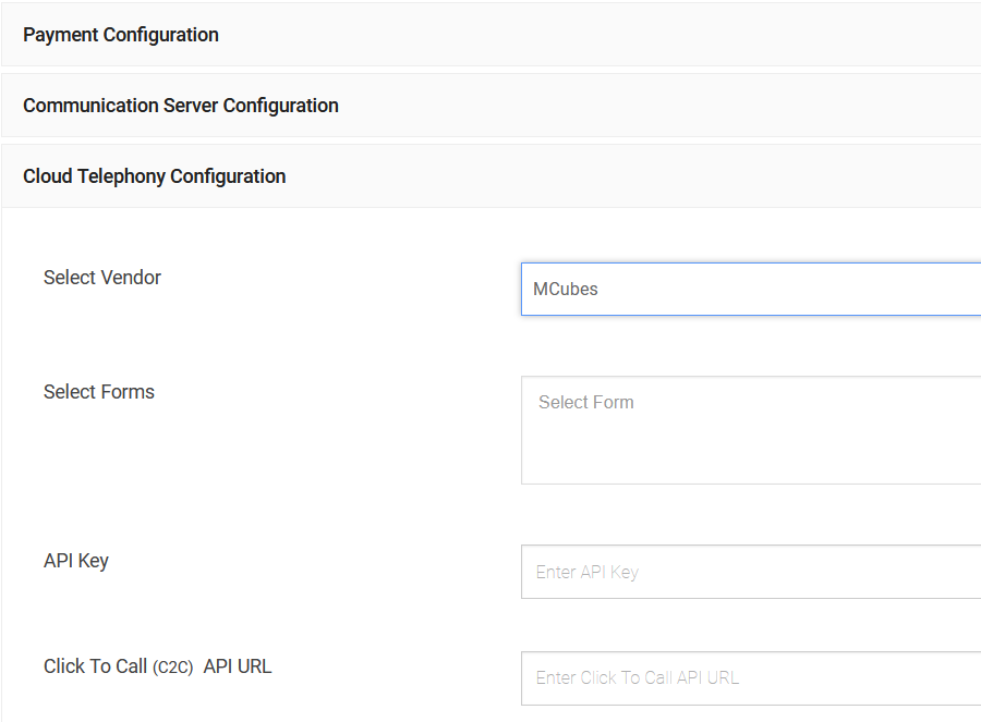 - Once prerequisites required to initiate the telephony integration are shared by the MCube team, then Meritto team will initiate the telephony configurations mentioned below and complete them in 3 working days.