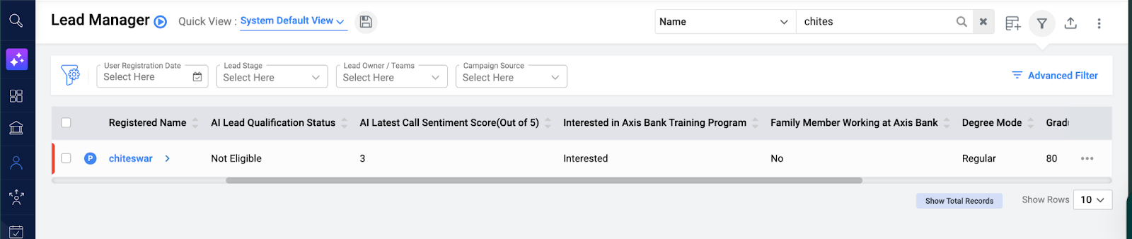 - To view the same, navigate to the Lead Manager.