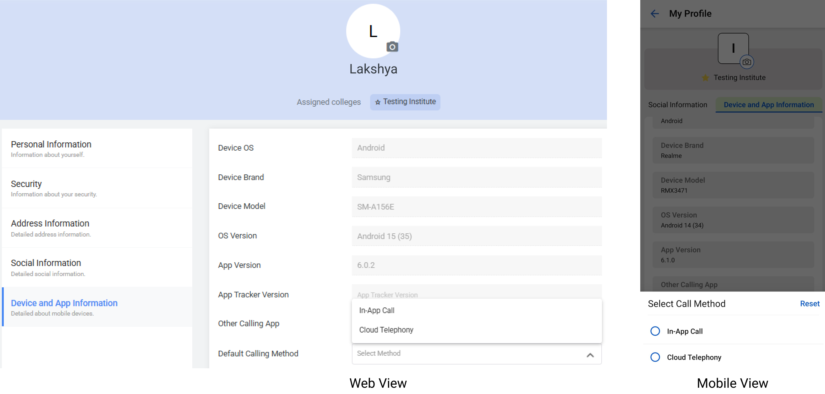 App Telephony can be used from both the Meritto Android app and the web, based on user permissions.