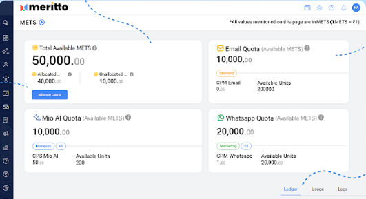 A centralized, rechargeable credit system that powers student engagement across all channels from WhatsApp, Email, SMS, Voice broadcast to advanced automation, and Agentic AI product lines, like Mio AI.