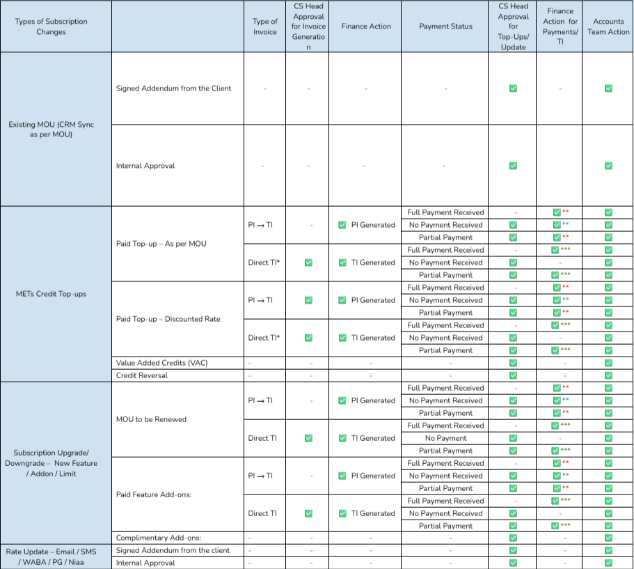 Note - This SOP ensures that any update done in the system follows one of the following processes with approval metrics (attached below):