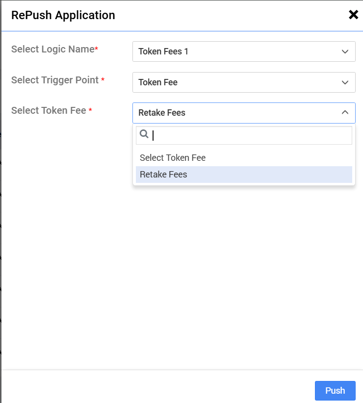 Now you can select the Token fees against which you want to push the data via manual push, this dropdown will show all the configured Token Fees in webhook configuration. In case of partial payment for the selected token fees only the latest entry will be pushed.
