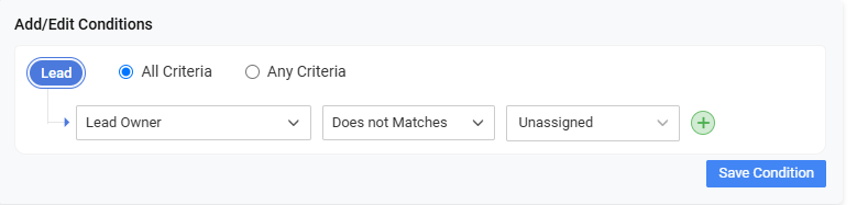 Even if the intent is to assign unassigned leads, the condition is mistakenly set as "Not Unassigned," which causes the logic to fail.