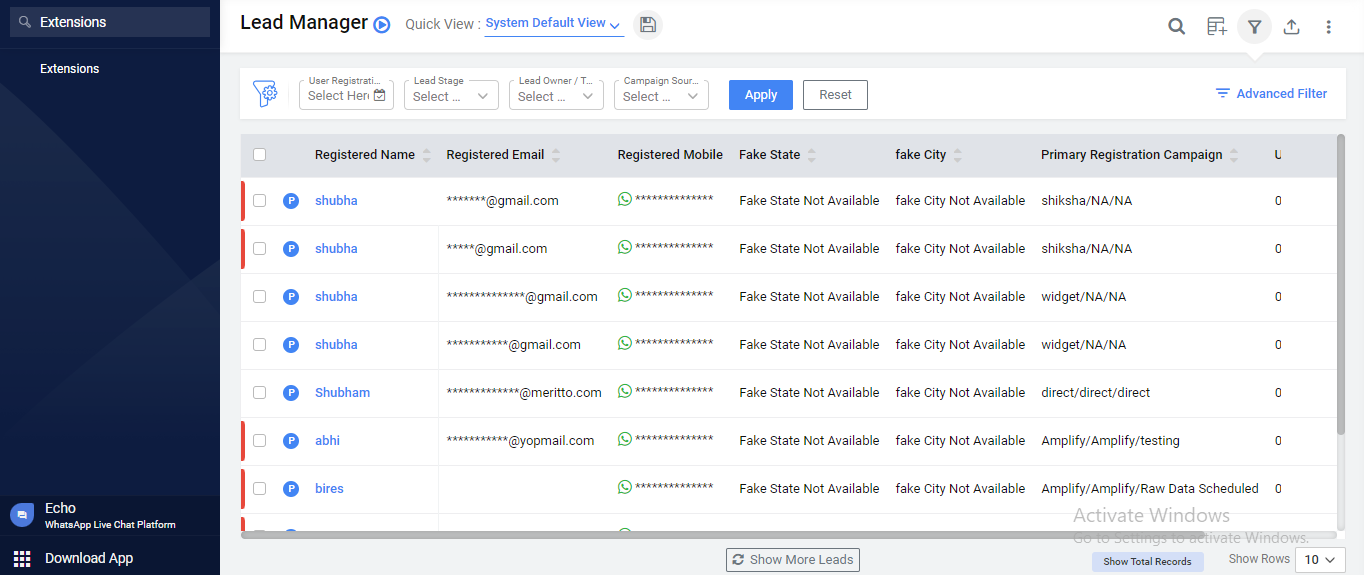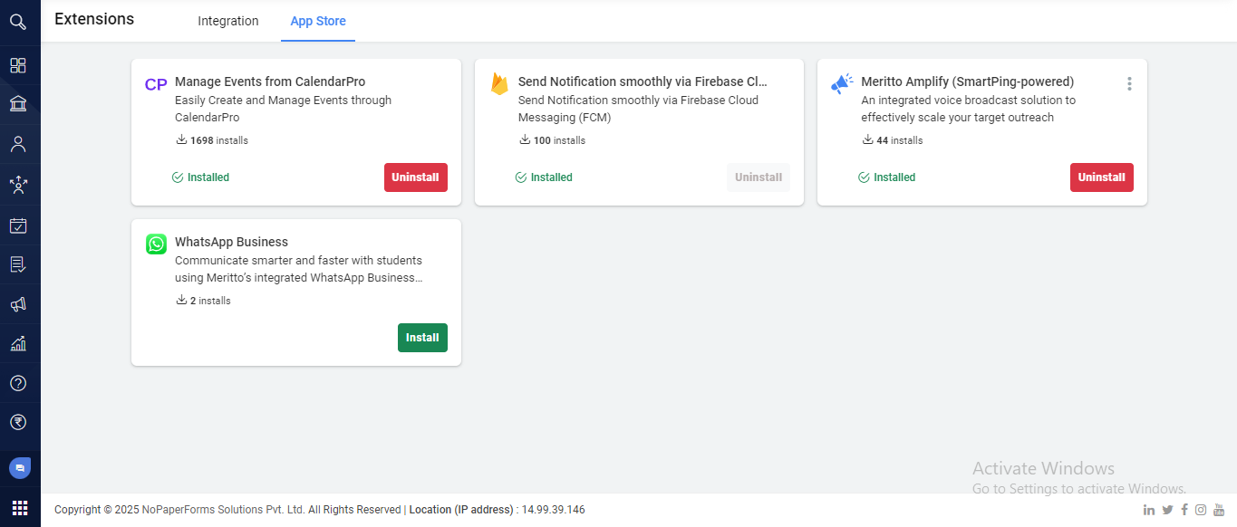 - Any WhatsApp Business Number added directly via the Facebook portal will not be visible in the Meritto portal. The number needs to be deleted and re-added after some time via the Meritto CRM.