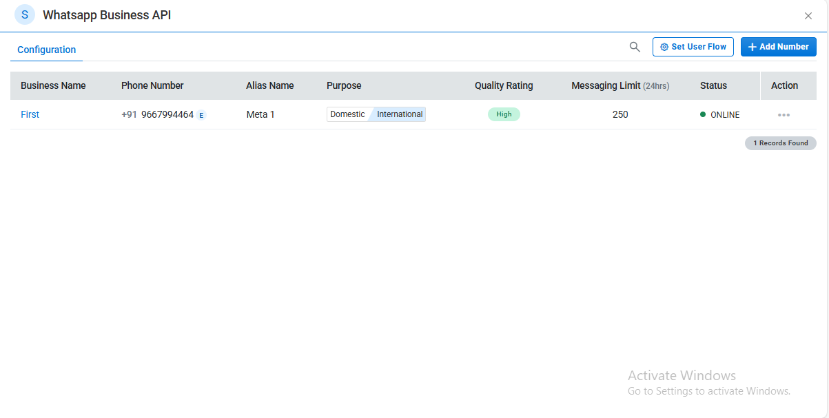 To configure the number after the number has been successfully added to the WABA Account, follow these steps: